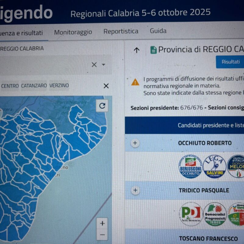 In questo articolo approfondiamo il dato elettorale delle elezioni regionali analizzandolo comune per comune. In provincia di Reggio Calabria (97 comuni) Occhiuto ha conquistato il 65,53% dei voti (pari a 154.075 in valore assoluto) contro il 33,57% di Tridico (pari a 73.450 in valore assoluto). 92 i comuni in cui ha vinto Occhiuto, 5 quelli in cui ha vinto Tridico.